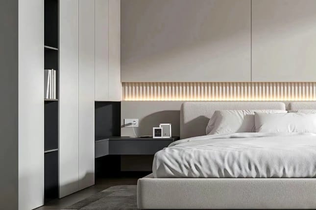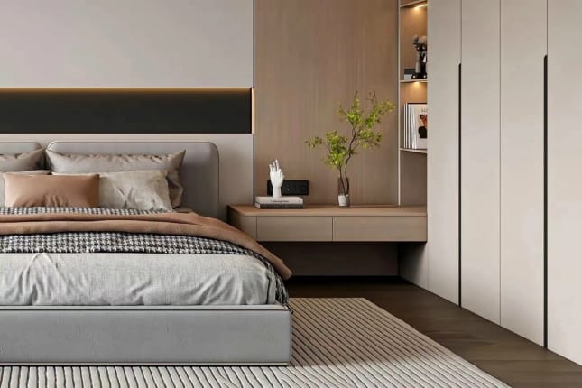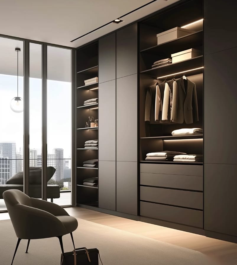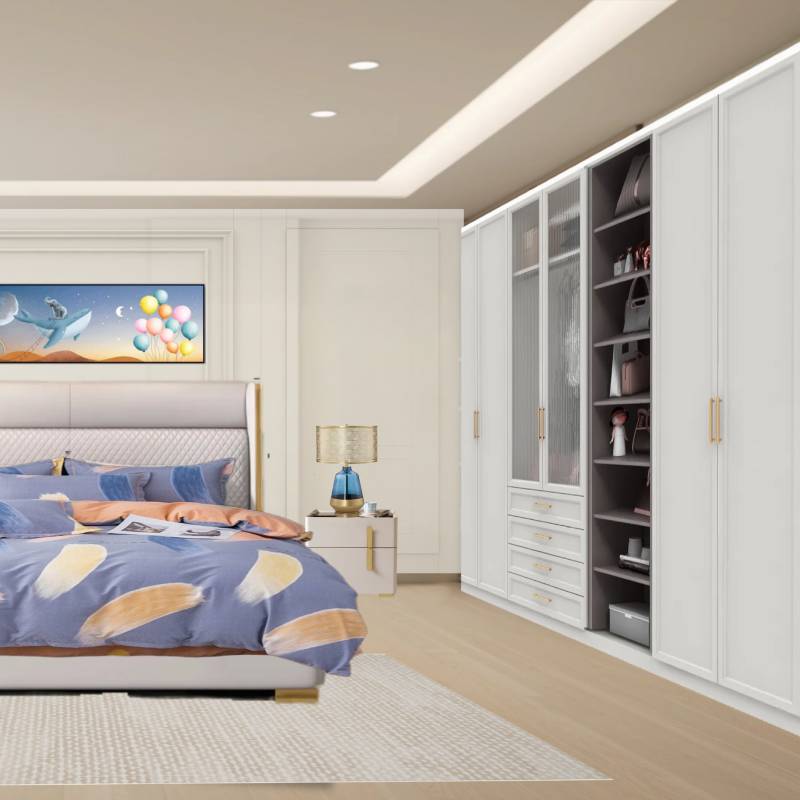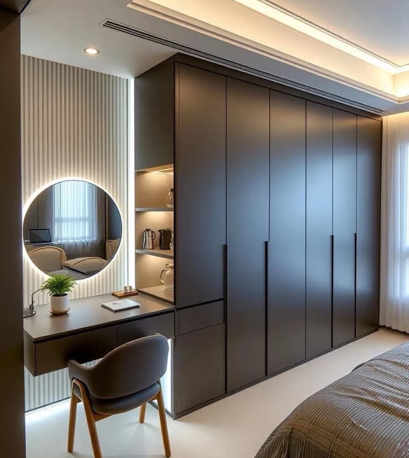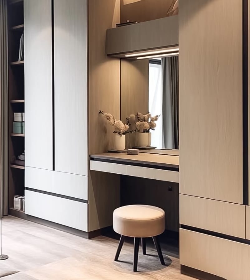 A wardrobe is a spacious storage unit designed to organize clothes, shoes, and accessories efficiently.